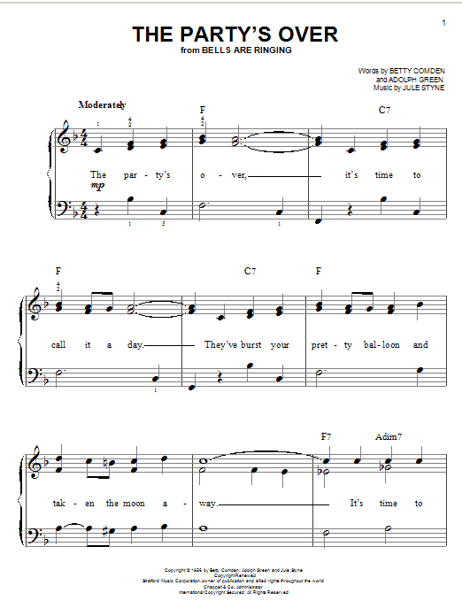 Download or print Jule Styne The Party's Over sheet music, chords and digital score arranged for Easy Piano. This Jazz score includes 3 page(s).