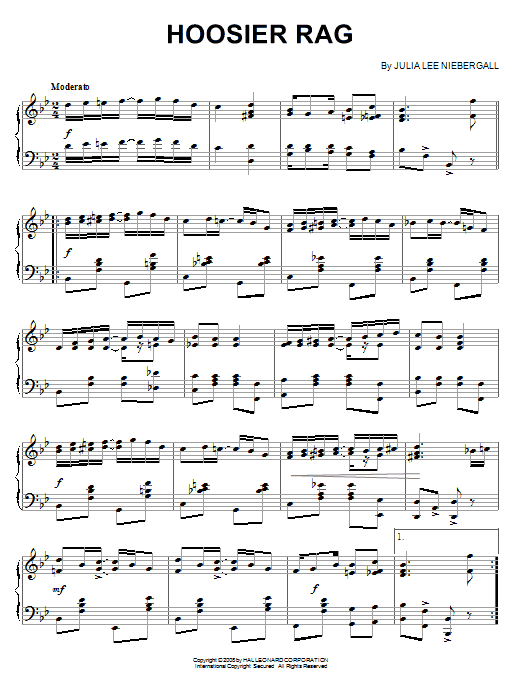 Download or print Julia Lee Niebergall Hoosier Rag sheet music, chords and digital score arranged for Piano Solo. This Jazz score includes 4 page(s).