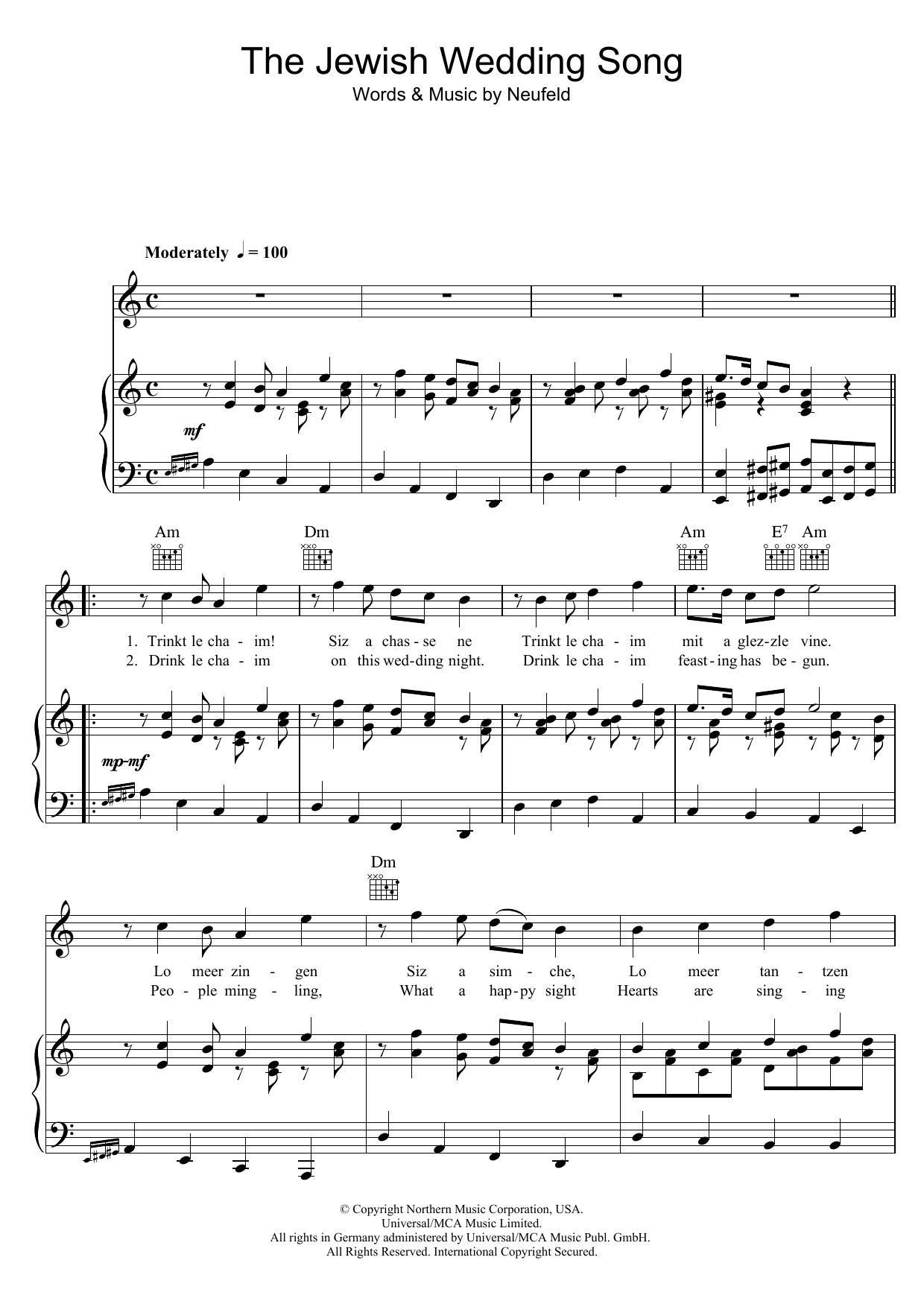 Download or print Julie Andrews The Jewish Wedding Song sheet music, chords and digital score arranged for Piano, Vocal & Guitar Chords. This Standards score includes 3 page(s).