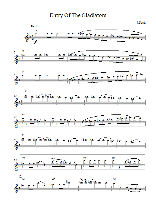 Download or print Julius Fucik Entry Of The Gladiators sheet music, chords and digital score arranged for Piano Solo. This Classical score includes 4 page(s).