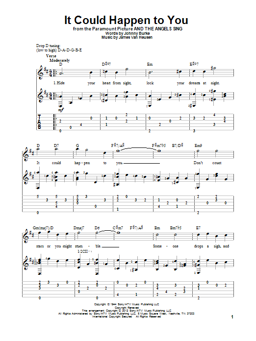 Download or print June Christy It Could Happen To You sheet music, chords and digital score arranged for Solo Guitar. This Jazz score includes 2 page(s).