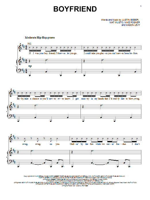 Download or print Justin Bieber Boyfriend sheet music, chords and digital score arranged for Easy Piano. This Pop score includes 6 page(s).