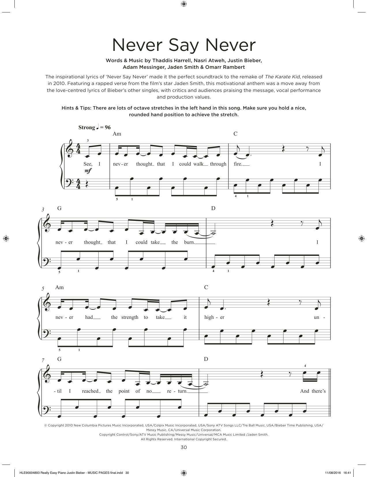 Download or print Justin Bieber & Jaden Never Say Never sheet music, chords and digital score arranged for Really Easy Piano. This Pop score includes 3 page(s).