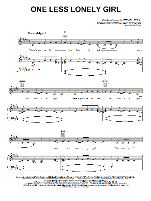 Download or print Justin Bieber One Less Lonely Girl sheet music, chords and digital score arranged for Easy Piano. This Pop score includes 8 page(s).
