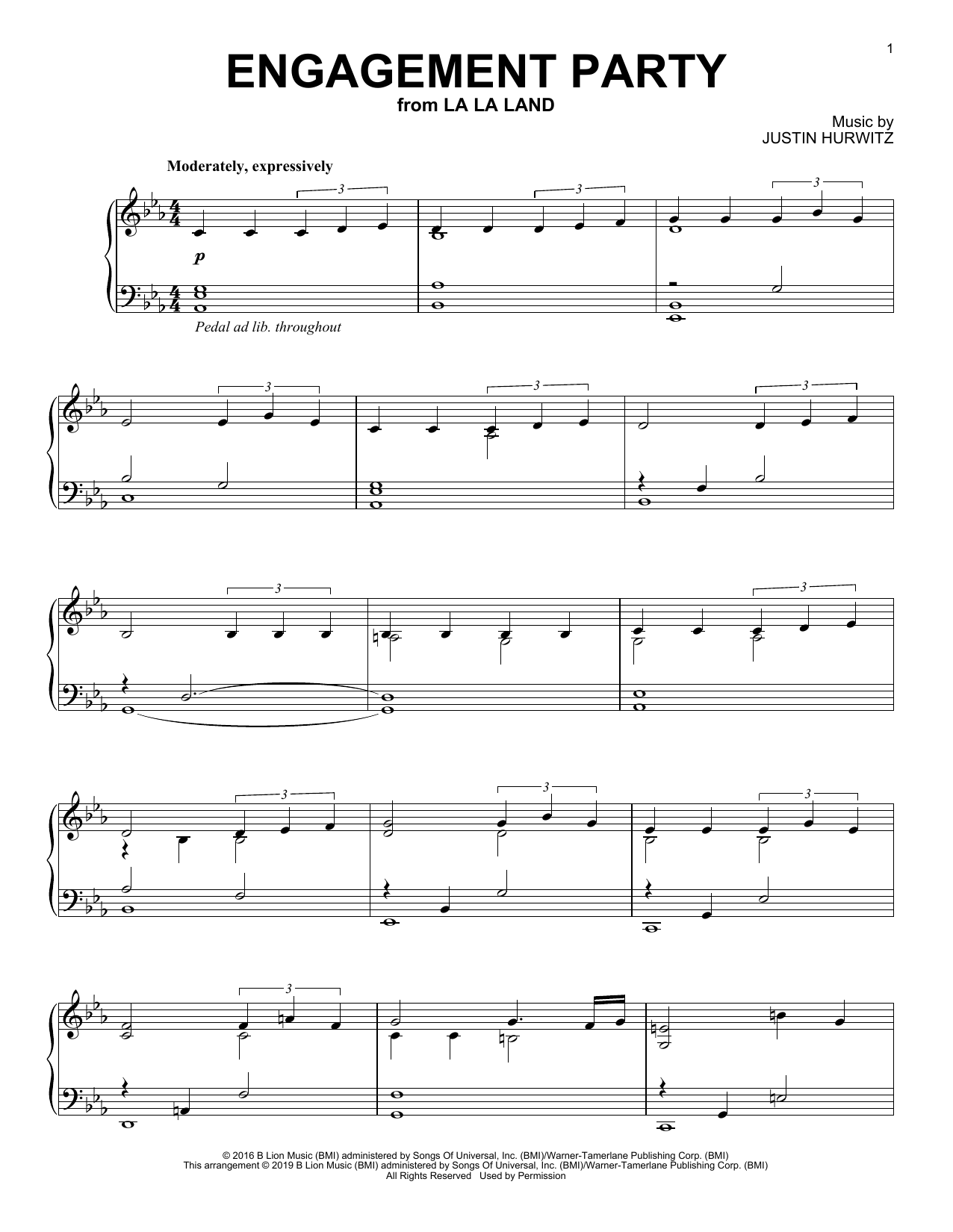 Download or print Justin Hurwitz Engagement Party (from La La Land) sheet music, chords and digital score arranged for Piano Solo. This Film/TV score includes 2 page(s).
