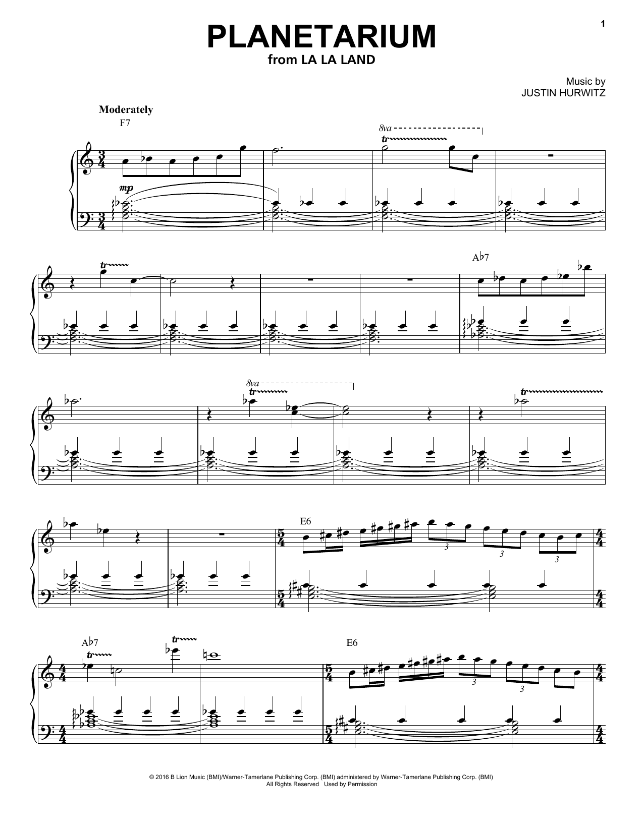 Download or print Justin Hurwitz Planetarium sheet music, chords and digital score arranged for Easy Guitar Tab. This Film/TV score includes 6 page(s).