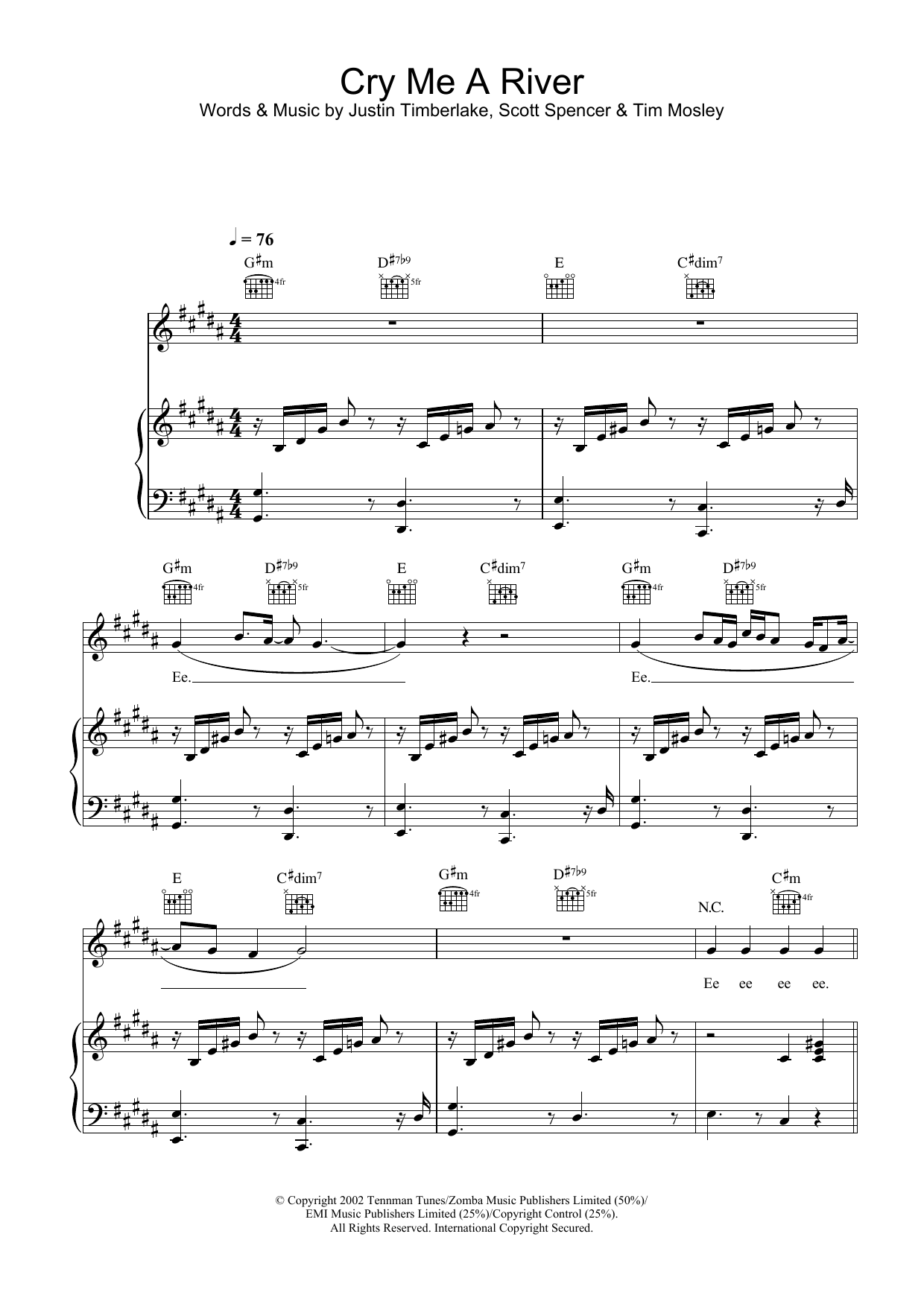 Download or print Justin Timberlake Cry Me A River sheet music, chords and digital score arranged for Piano, Vocal & Guitar Chords (Right-Hand Melody). This Pop score includes 10 page(s).