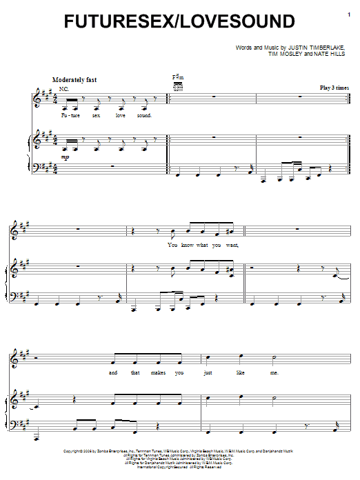 Download or print Justin Timberlake FutureSex/Lovesound sheet music, chords and digital score arranged for Piano, Vocal & Guitar Chords (Right-Hand Melody). This Pop score includes 10 page(s).
