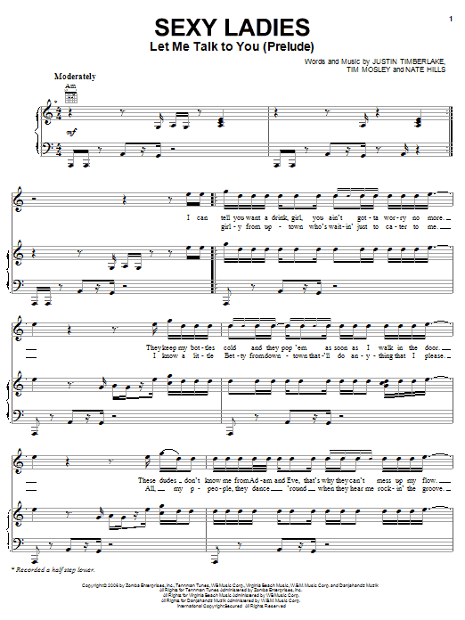 Download or print Justin Timberlake Sexy Ladies (Let Me Talk To You Prelude) sheet music, chords and digital score arranged for Piano, Vocal & Guitar Chords (Right-Hand Melody). This Pop score includes 11 page(s).