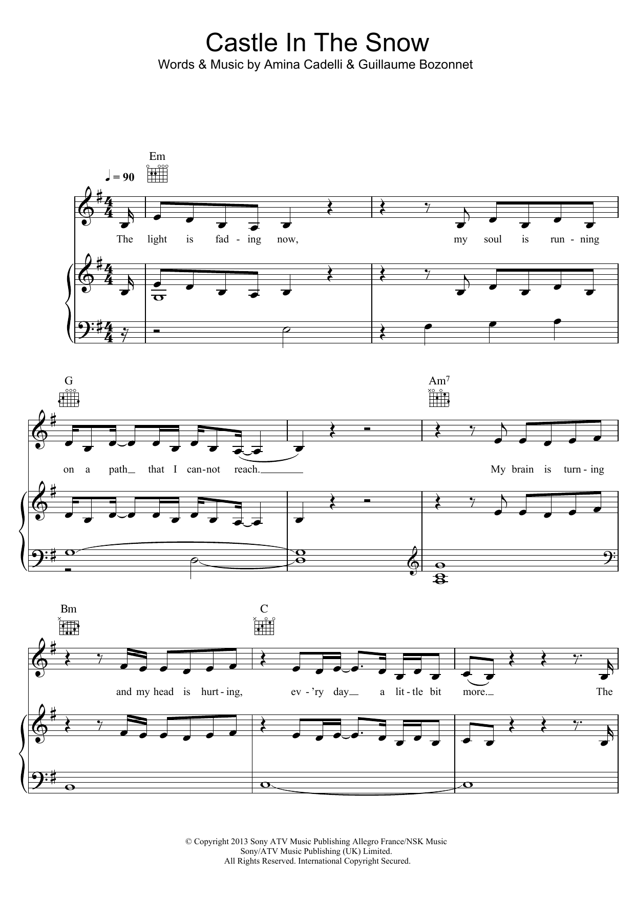 Download or print Kadebostany Castle In The Snow sheet music, chords and digital score arranged for Piano, Vocal & Guitar Chords. This Pop score includes 6 page(s).