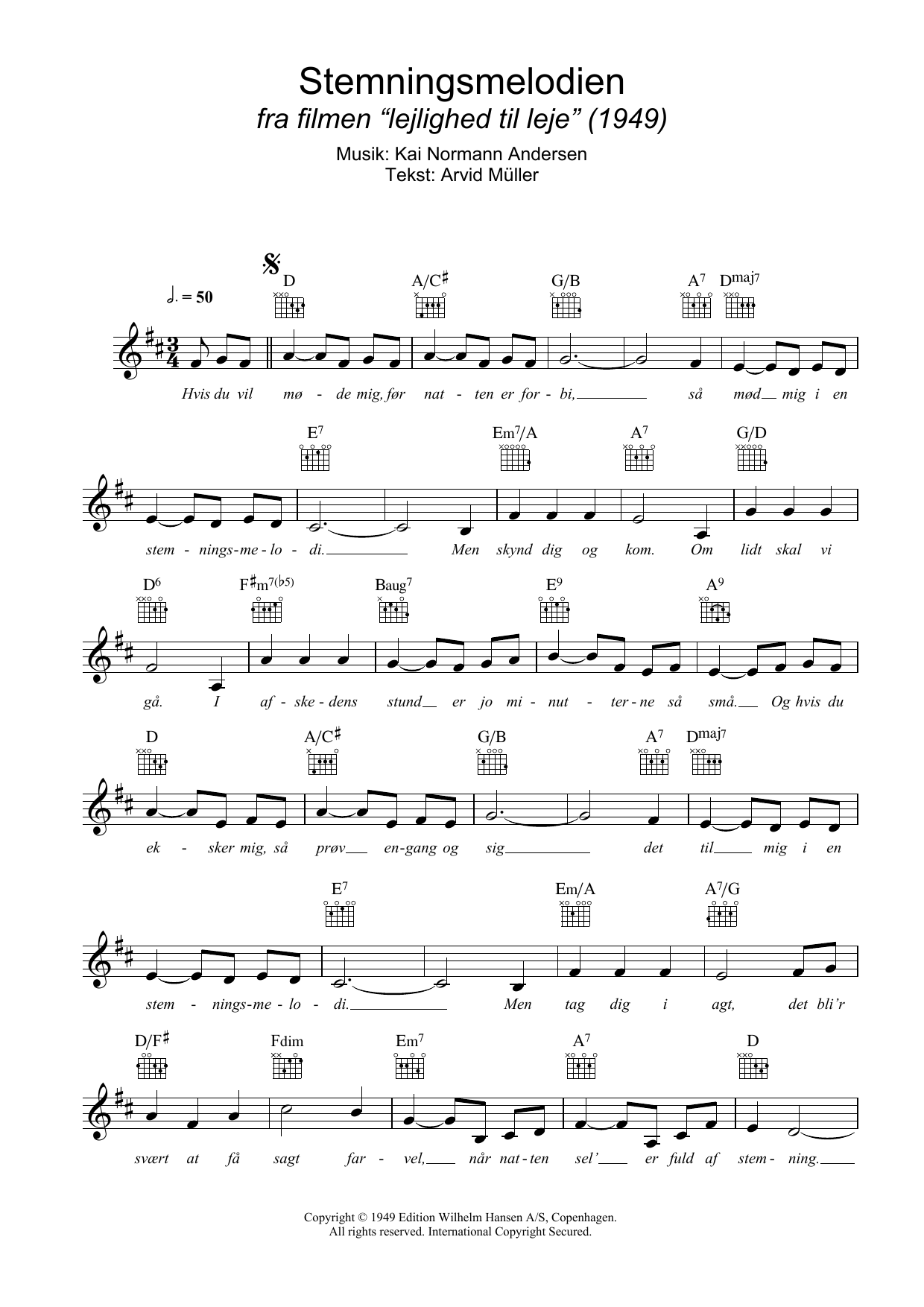 Download or print Kai Normann Andersen Stemningsmelodien sheet music, chords and digital score arranged for Lead Sheet / Fake Book. This Film/TV score includes 2 page(s).