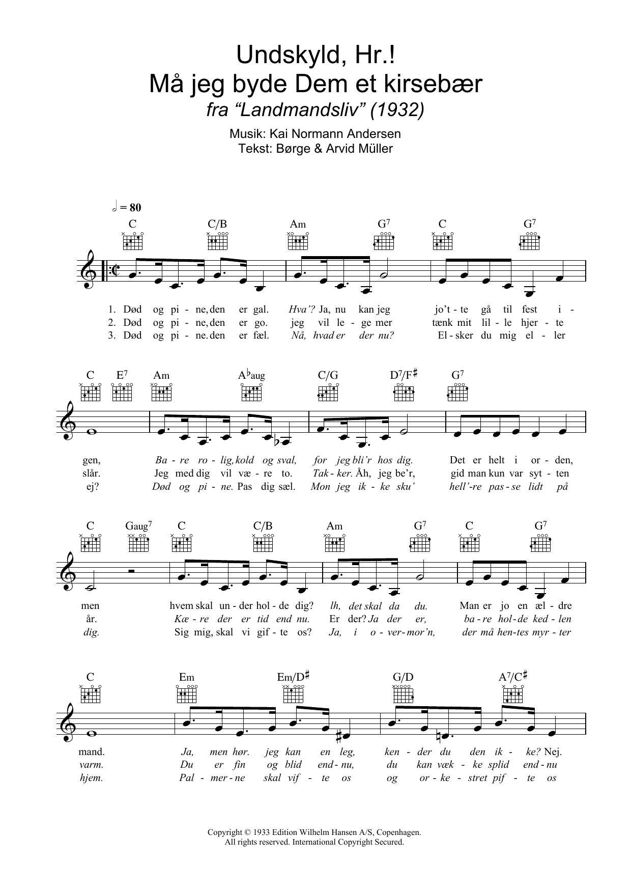 Download or print Kai Normann Andersen Undskyld, Hr.! Ma Jeg Byde Dem Et Kirsebaer sheet music, chords and digital score arranged for Lead Sheet / Fake Book. This Film/TV score includes 3 page(s).