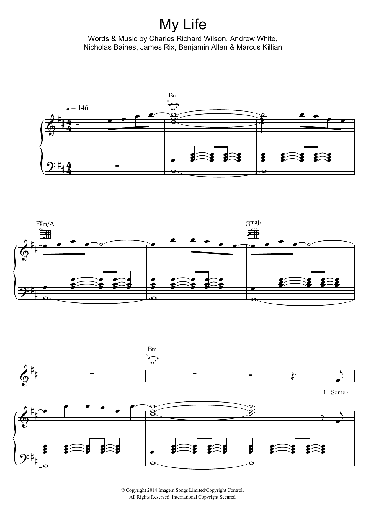 Download or print Kaiser Chiefs My Life sheet music, chords and digital score arranged for Piano, Vocal & Guitar Chords. This Pop score includes 8 page(s).