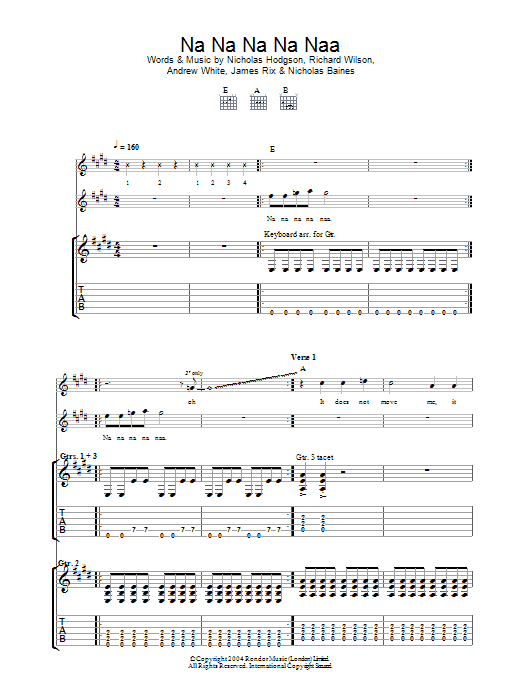Download or print Kaiser Chiefs Na Na Na Na Naa sheet music, chords and digital score arranged for Guitar Tab. This Rock score includes 11 page(s).