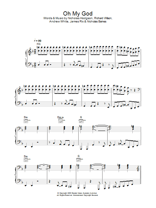 Download or print Kaiser Chiefs Oh My God sheet music, chords and digital score arranged for Piano, Vocal & Guitar Chords. This Rock score includes 5 page(s).
