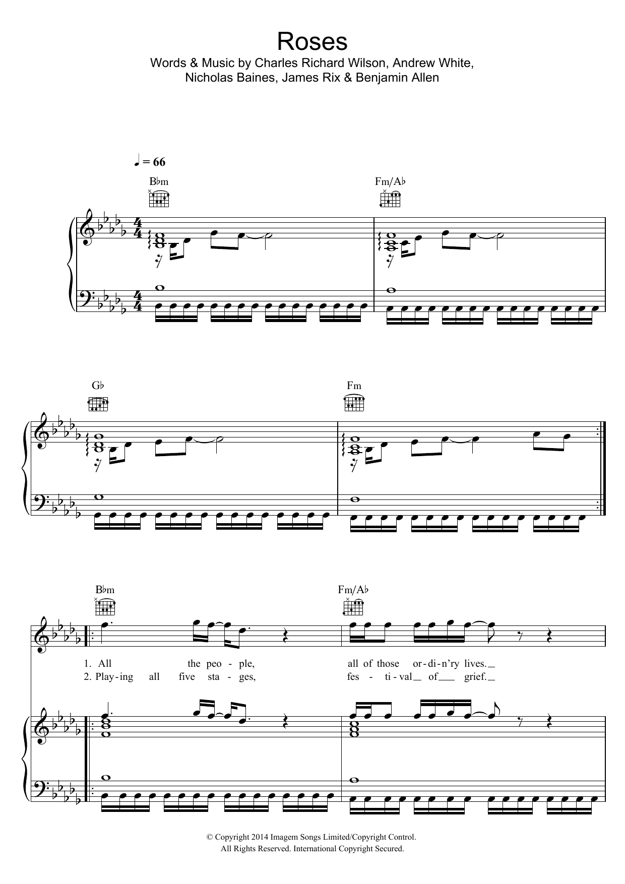Download or print Kaiser Chiefs Roses sheet music, chords and digital score arranged for Piano, Vocal & Guitar Chords. This Pop score includes 6 page(s).