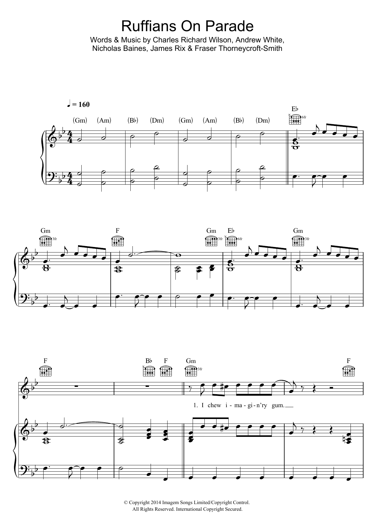 Download or print Kaiser Chiefs Ruffians On Parade sheet music, chords and digital score arranged for Piano, Vocal & Guitar Chords. This Pop score includes 7 page(s).
