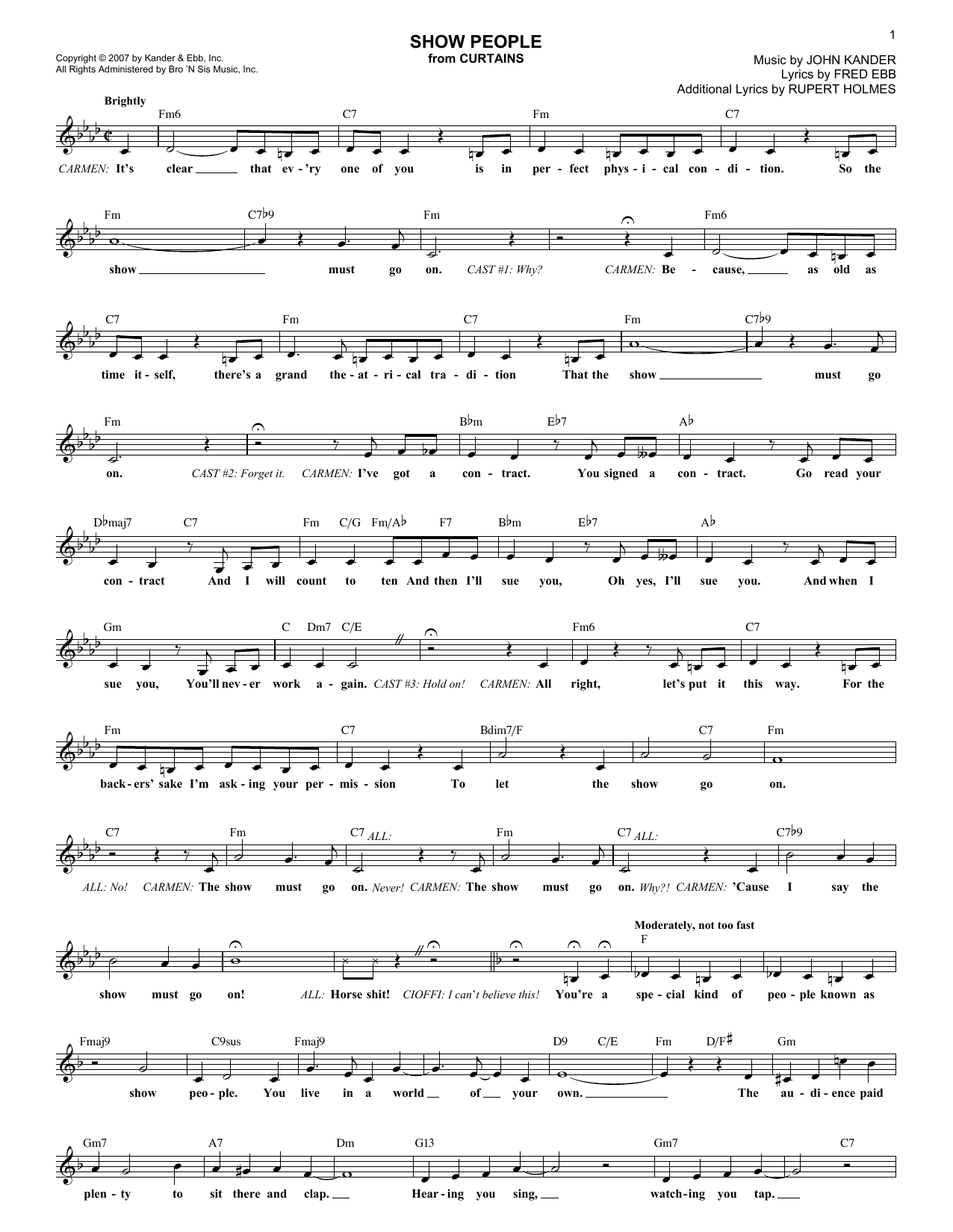 Download or print Kander & Ebb Show People sheet music, chords and digital score arranged for Lead Sheet / Fake Book. This Musical/Show score includes 3 page(s).