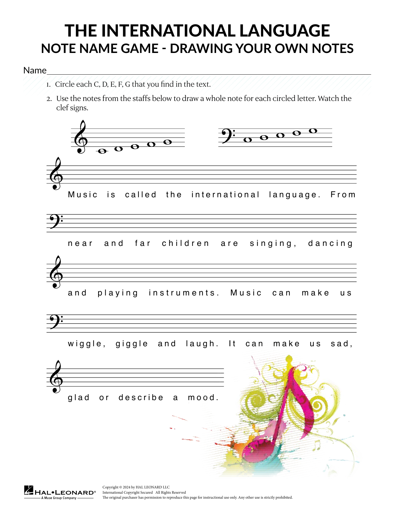 Quick facts Drawing Notes - C D E F G about digital sheet music