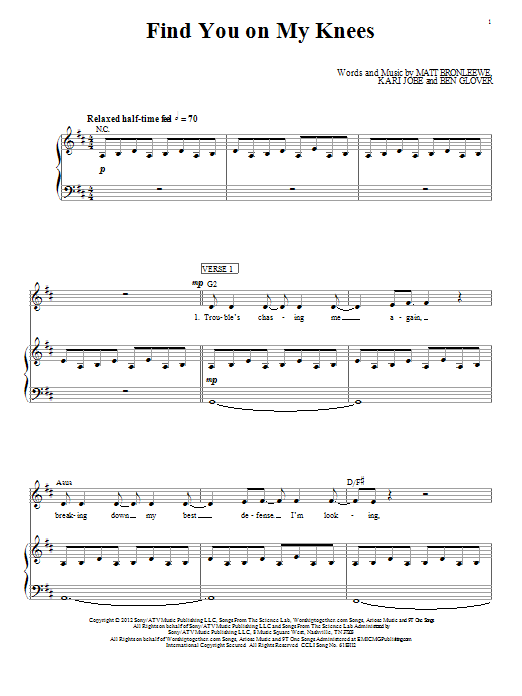 Download or print Kari Jobe Find You On My Knees sheet music, chords and digital score arranged for Piano, Vocal & Guitar Chords (Right-Hand Melody). This Christian score includes 8 page(s).
