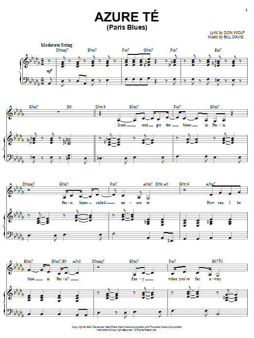 Download or print Karrin Allyson Azure-Te (Paris Blues) sheet music, chords and digital score arranged for Piano, Vocal & Guitar Chords (Right-Hand Melody). This Jazz score includes 5 page(s).