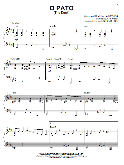 Quick facts O Pato (The Duck) [Jazz version] (arr. Brent Edstrom) about digital sheet music