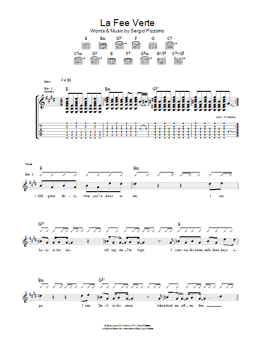 Download or print Kasabian Le Fee Verte sheet music, chords and digital score arranged for Guitar Tab. This Pop score includes 5 page(s).