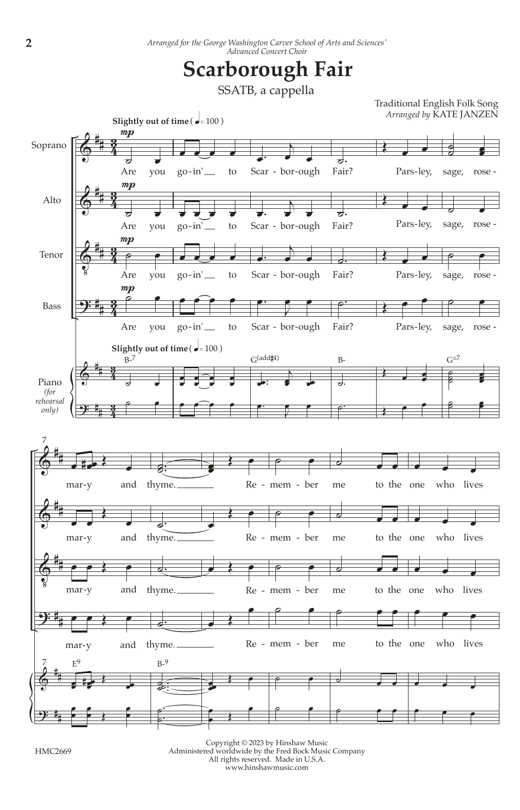 Download or print Kate Janzen Scarborough Fair sheet music, chords and digital score arranged for SSATB Choir. This Concert score includes 10 page(s).