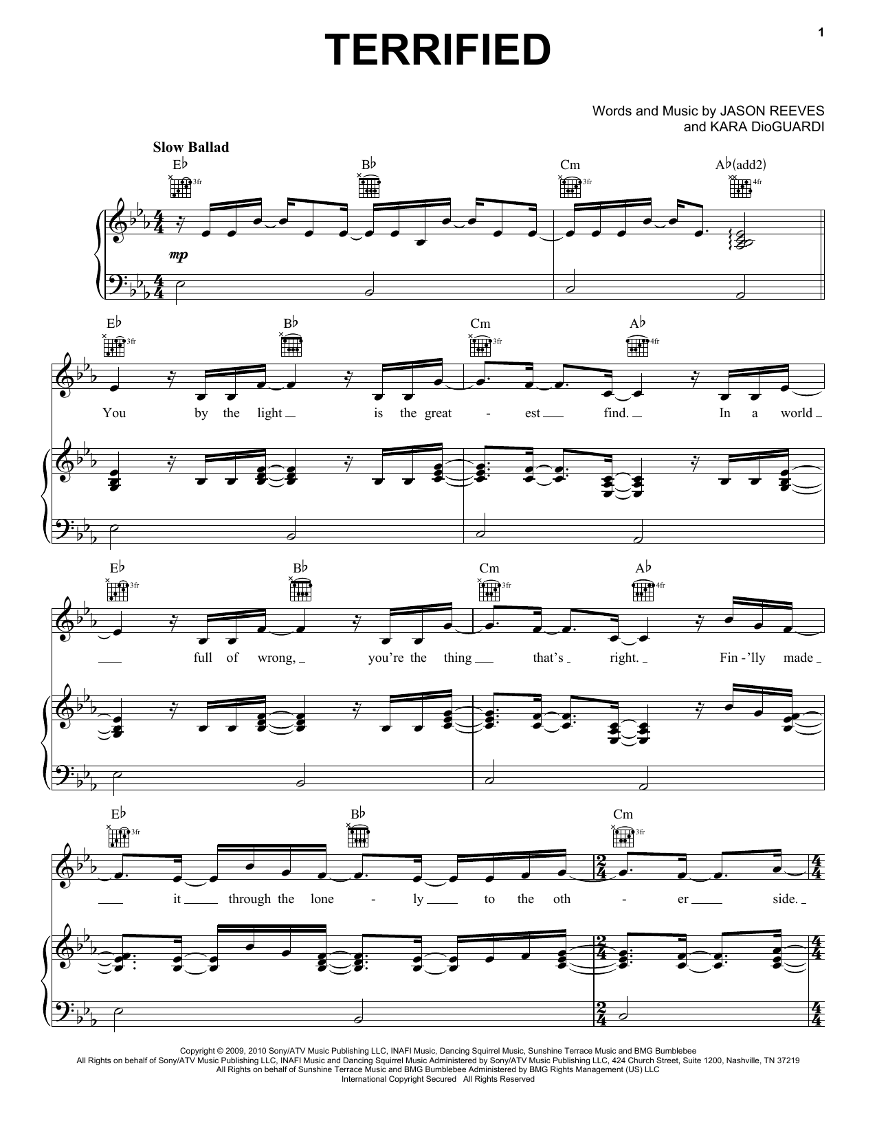 Download or print Katharine McPhee Terrified sheet music, chords and digital score arranged for Piano, Vocal & Guitar Chords (Right-Hand Melody). This Pop score includes 6 page(s).