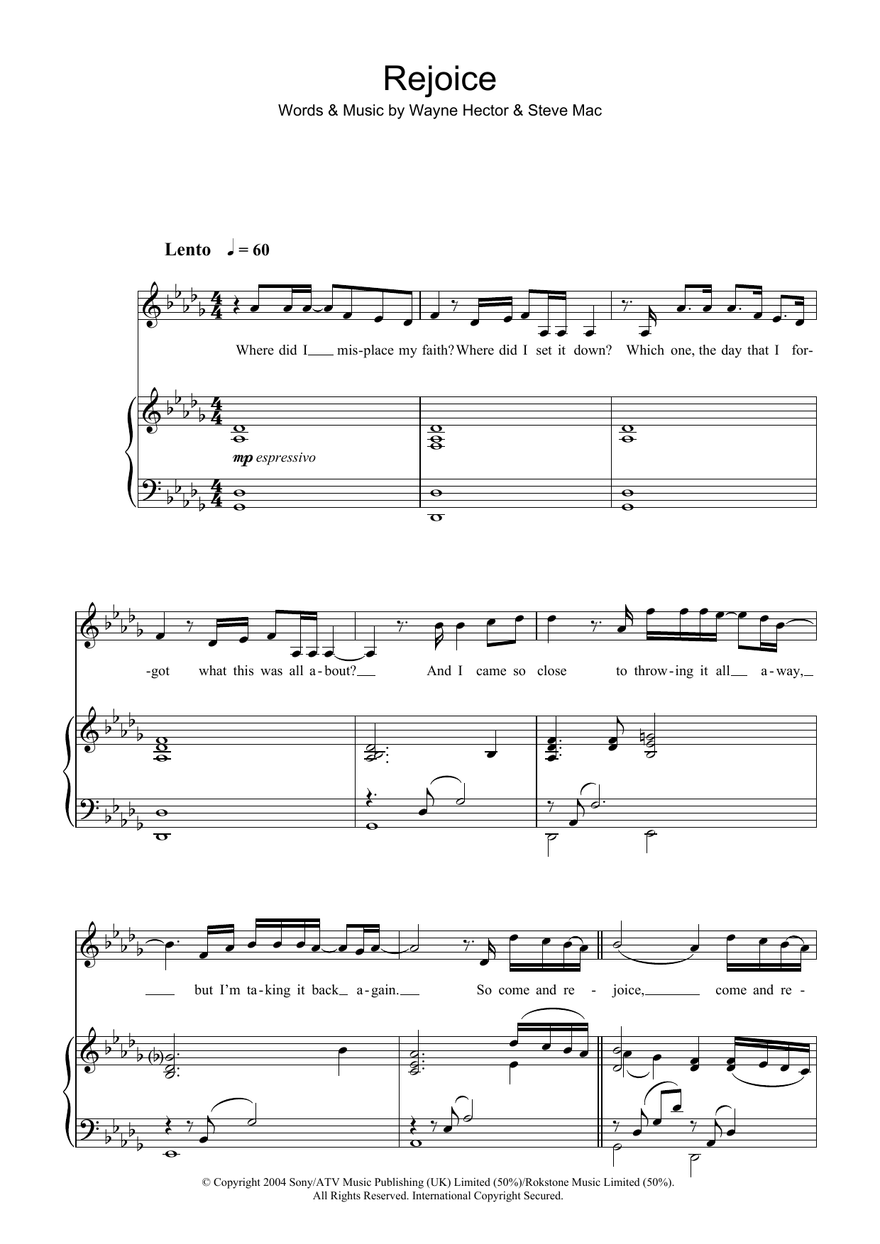 Download or print Katherine Jenkins Rejoice sheet music, chords and digital score arranged for SATB Choir. This Classical score includes 8 page(s).