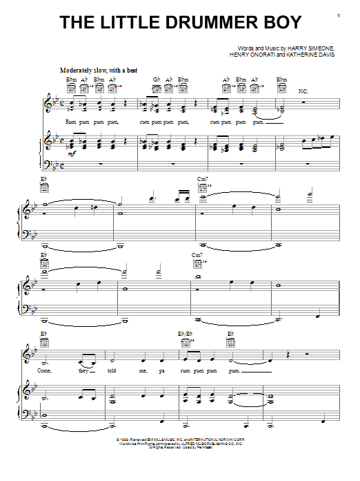 Download or print Katherine K. Davis The Little Drummer Boy sheet music, chords and digital score arranged for Easy Piano. This Christmas score includes 4 page(s).