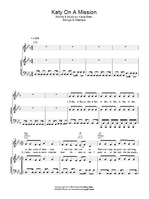 Download or print Katy B Katy On A Mission sheet music, chords and digital score arranged for Piano, Vocal & Guitar Chords. This Pop score includes 7 page(s).