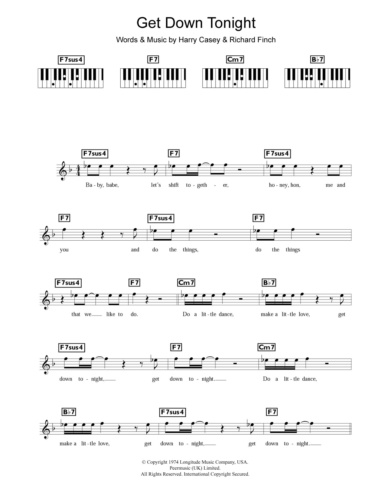 Quick facts Get Down Tonight about digital sheet music