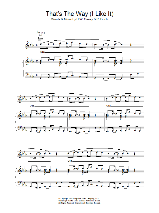 Download or print KC and The Sunshine Band That's The Way (I Like It) sheet music, chords and digital score arranged for Guitar Chords/Lyrics. This Disco score includes 2 page(s).