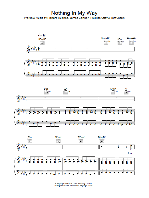 Download or print Keane Nothing In My Way sheet music, chords and digital score arranged for Piano, Vocal & Guitar Chords. This Pop score includes 3 page(s).