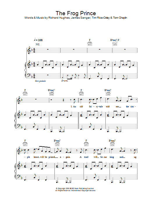 Download or print Keane The Frog Prince sheet music, chords and digital score arranged for Flute Solo. This Pop score includes 3 page(s).
