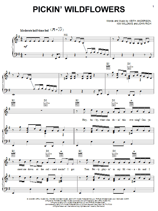 Download or print Keith Anderson Pickin' Wildflowers sheet music, chords and digital score arranged for Guitar Tab (Single Guitar). This Country score includes 7 page(s).