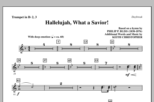 Quick facts Hallelujah, What A Savior! - Bb Trumpet 2,3 about digital sheet music