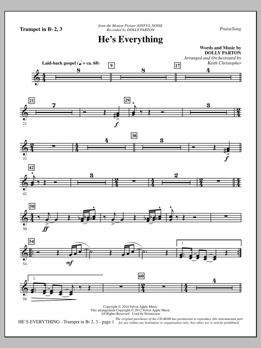 Download or print Keith Christopher He's Everything - Bb Trumpet 2,3 sheet music, chords and digital score arranged for Choir Instrumental Pak. This Pop score includes 2 page(s).