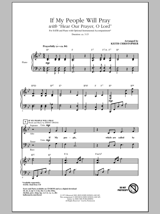 Download or print Keith Christopher If My People Will Pray sheet music, chords and digital score arranged for SATB Choir. This Patriotic score includes 7 page(s).