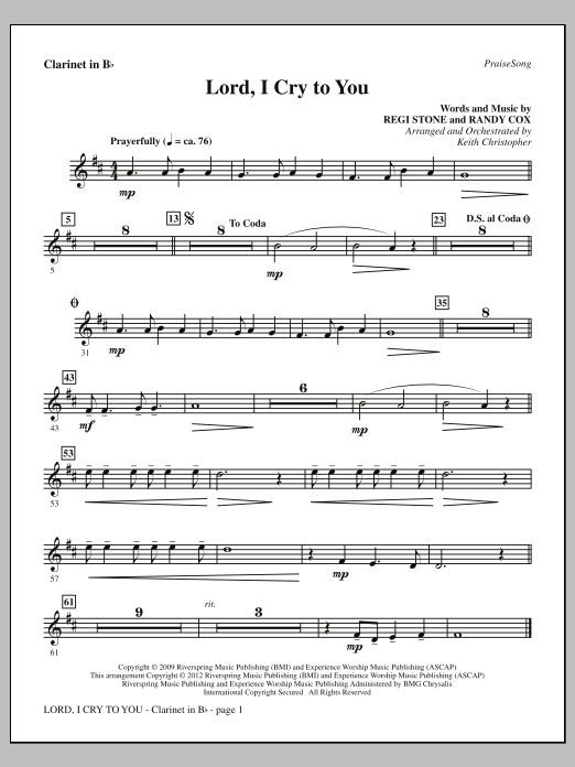 Download or print Keith Christopher Lord, I Cry To You - Bb Clarinet sheet music, chords and digital score arranged for Choir Instrumental Pak. This Contemporary score includes 9 page(s).