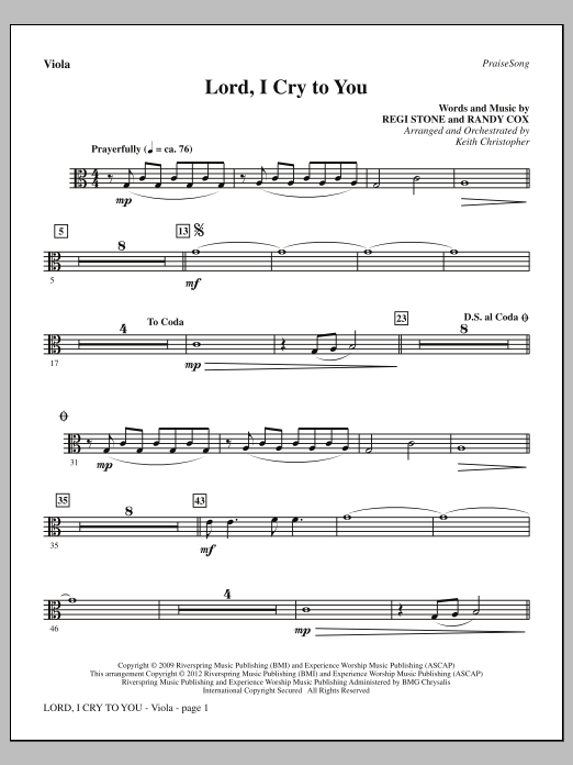 Download or print Keith Christopher Lord, I Cry To You - Viola sheet music, chords and digital score arranged for Choir Instrumental Pak. This Contemporary score includes 9 page(s).