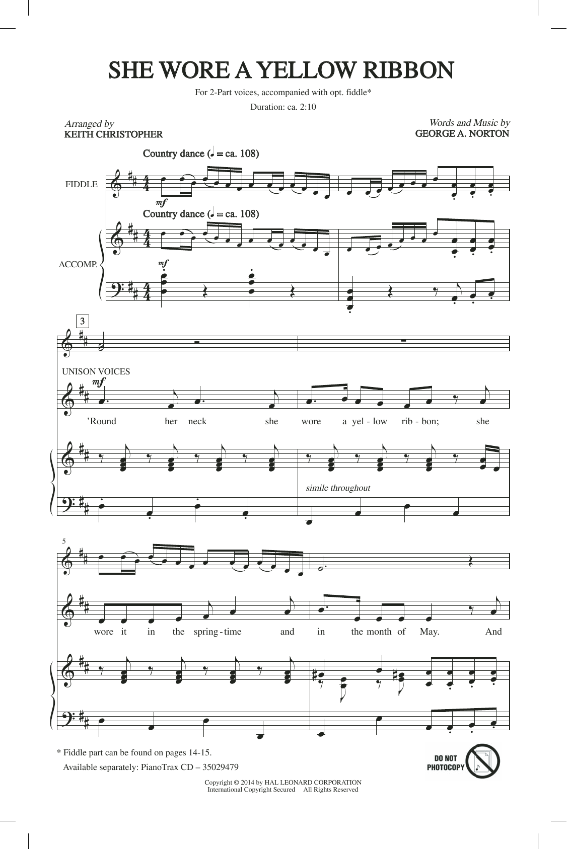 Download or print Keith Christopher She Wore A Yellow Ribbon sheet music, chords and digital score arranged for 2-Part Choir. This Standards score includes 13 page(s).
