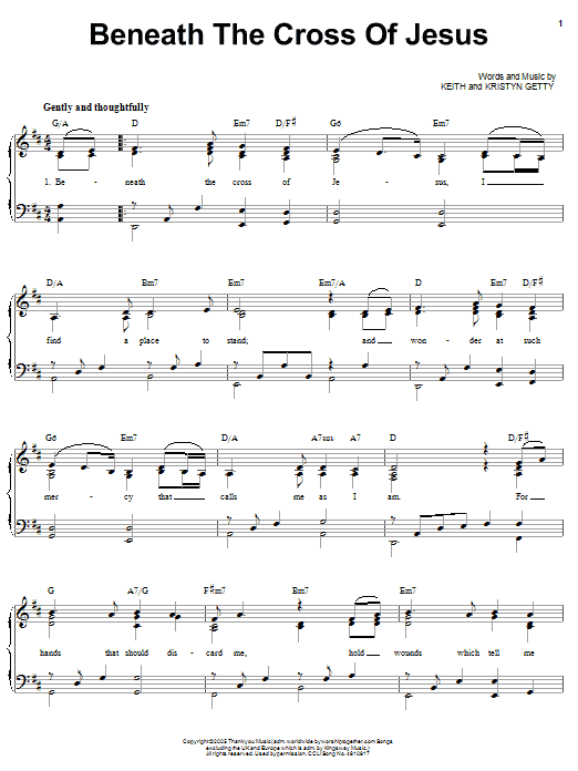 Download or print Keith Getty Beneath The Cross sheet music, chords and digital score arranged for Piano, Vocal & Guitar Chords (Right-Hand Melody). This Christian score includes 2 page(s).