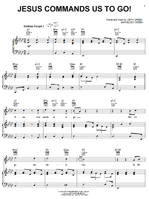 Download or print Keith Green Jesus Commands Us To Go sheet music, chords and digital score arranged for Piano, Vocal & Guitar Chords (Right-Hand Melody). This Christian score includes 7 page(s).