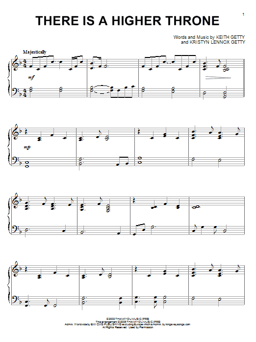 Download or print Keith & Kristyn Getty There Is A Higher Throne sheet music, chords and digital score arranged for Piano, Vocal & Guitar Chords (Right-Hand Melody). This Christian score includes 4 page(s).