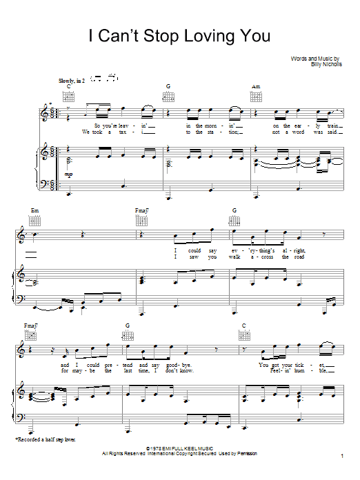 Quick facts Can't Stop Loving You (Though I Try) about digital sheet music