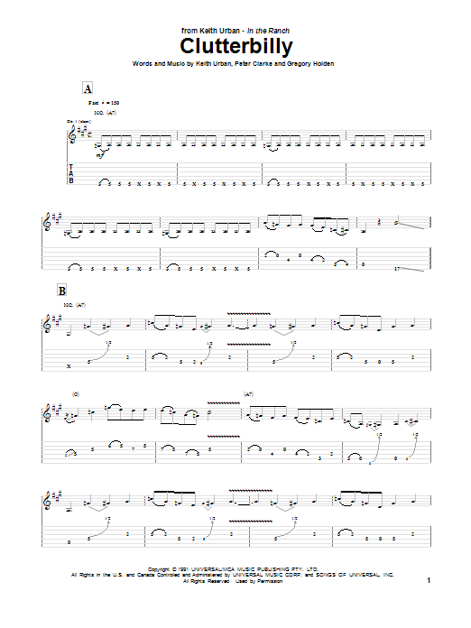 Download or print Keith Urban Clutterbilly sheet music, chords and digital score arranged for Guitar Lead Sheet. This Country score includes 6 page(s).