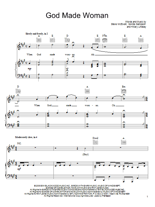 Download or print Keith Urban God Made Woman sheet music, chords and digital score arranged for Guitar Tab. This Country score includes 11 page(s).