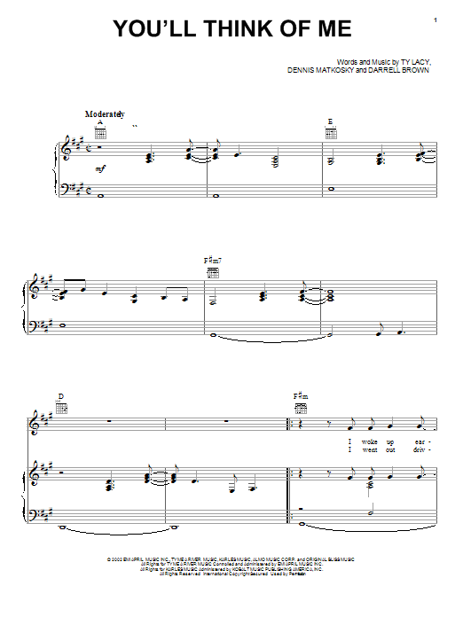 Quick facts You'll Think Of Me about digital sheet music